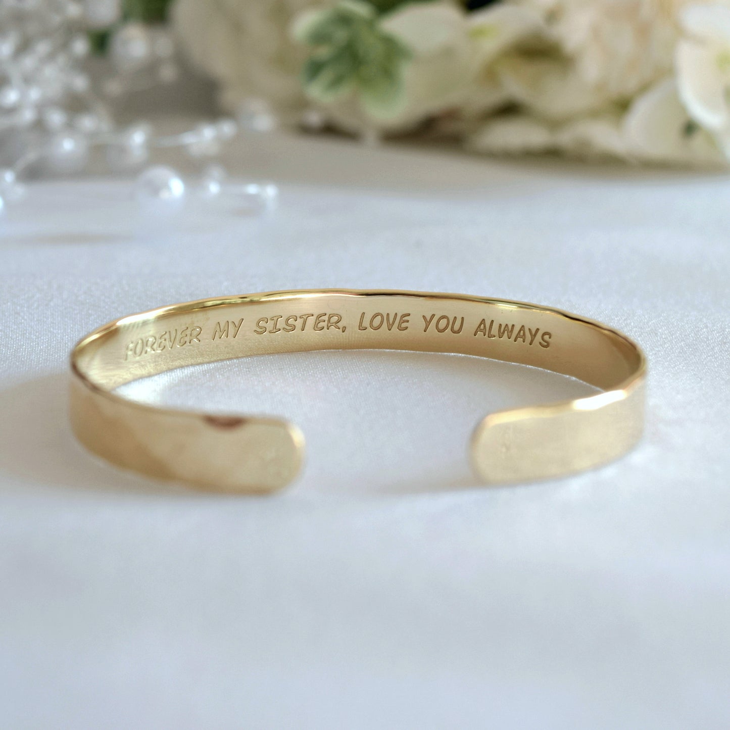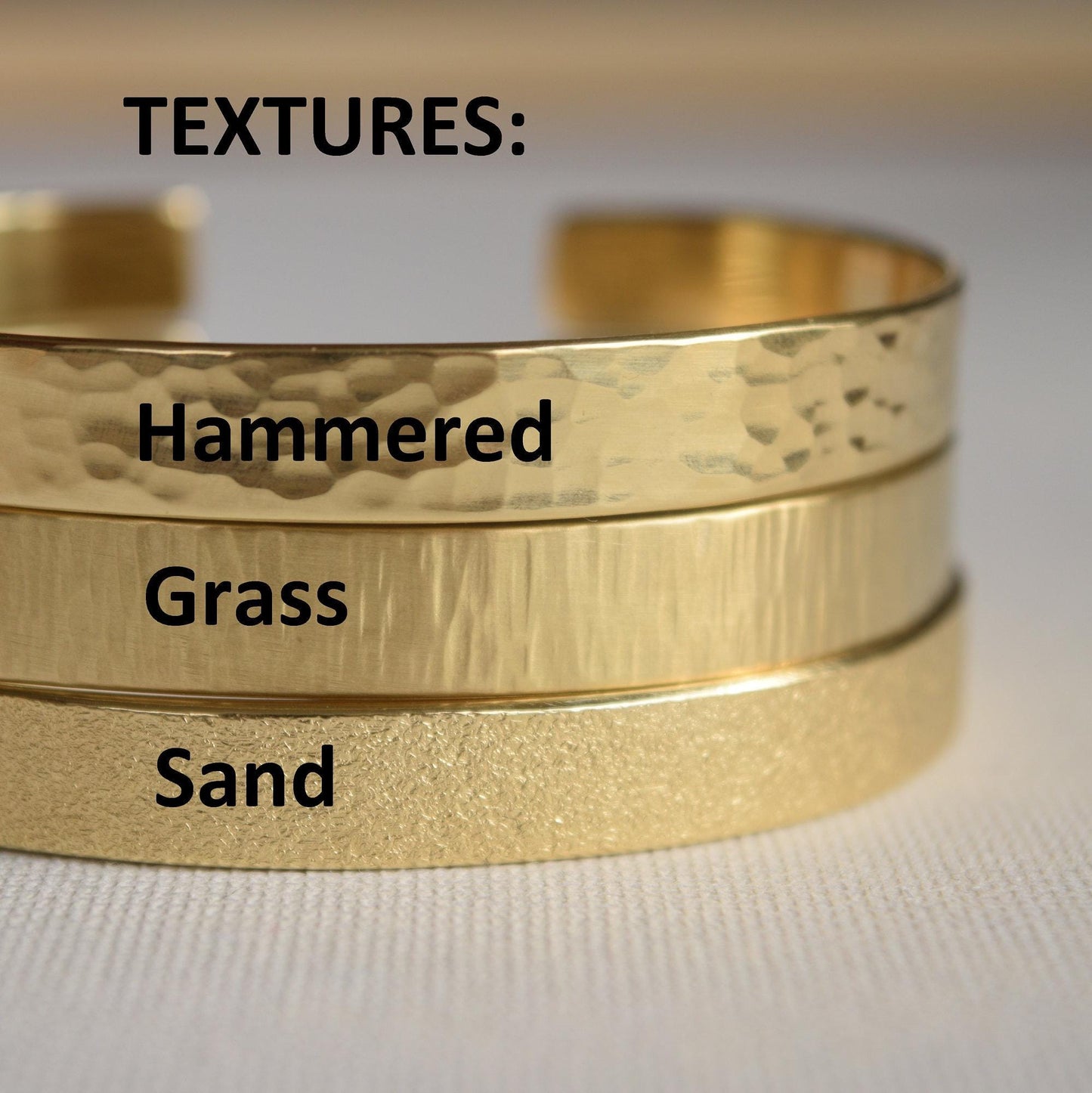 - The bracelets are available in both smooth and textured finishes.