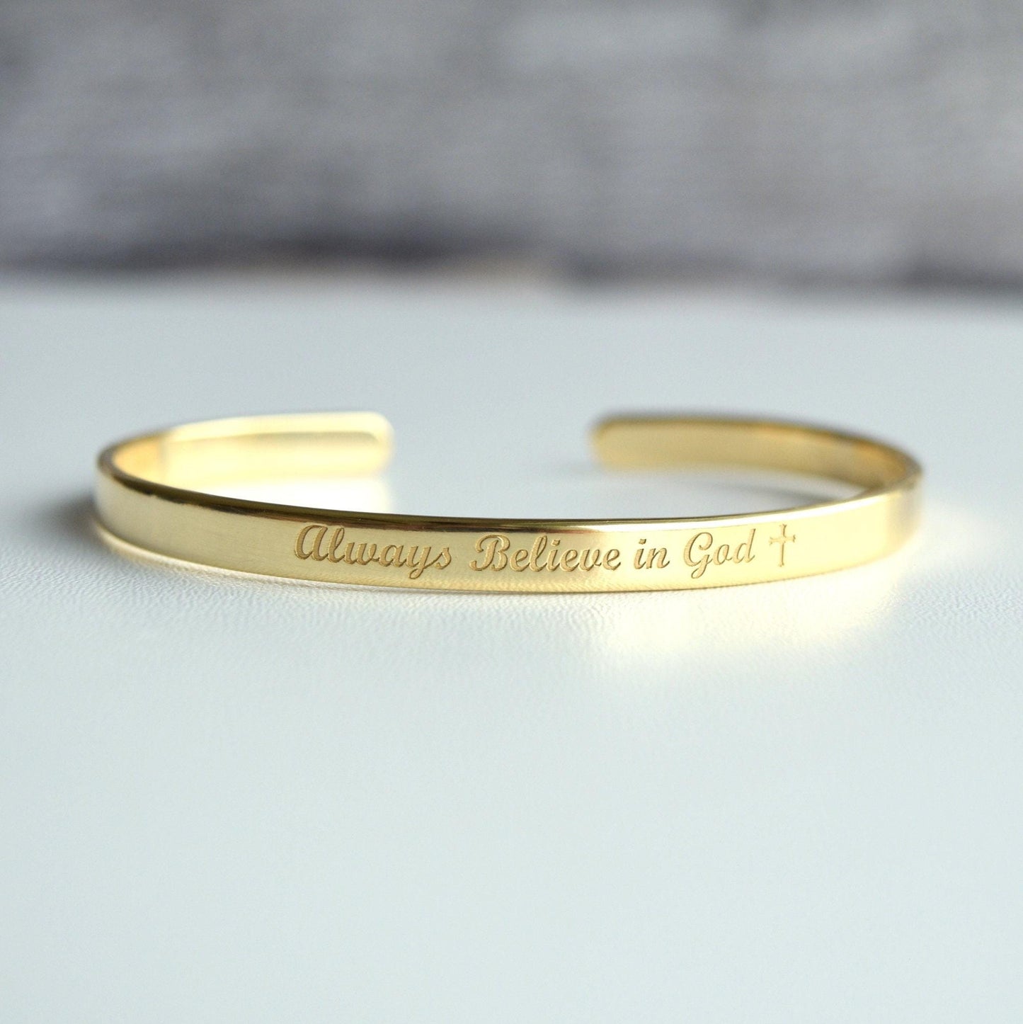 Catholic, Symbol of Faith, Hope, Love, God, 22K Gold Plated Engraved Bracelet, Engraved Bangle, Gold Cuff, WWJD Bracelet with Crucifix