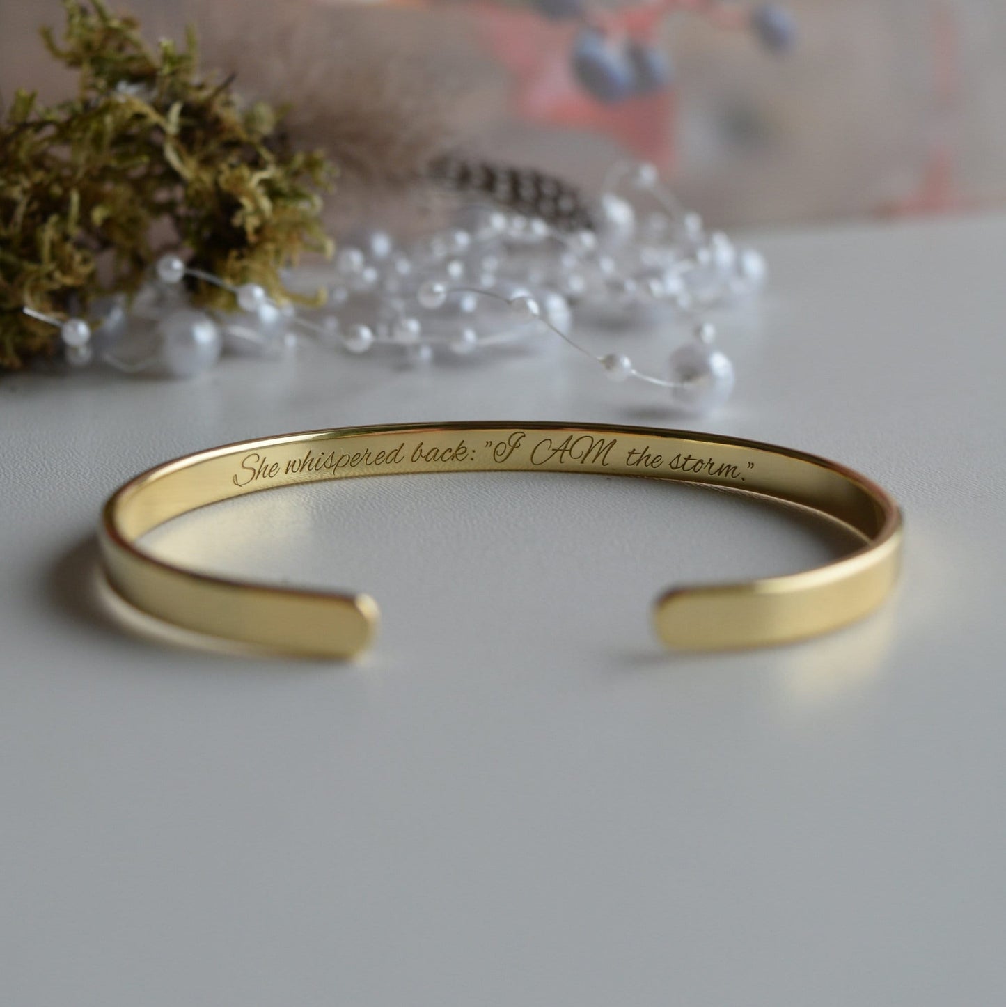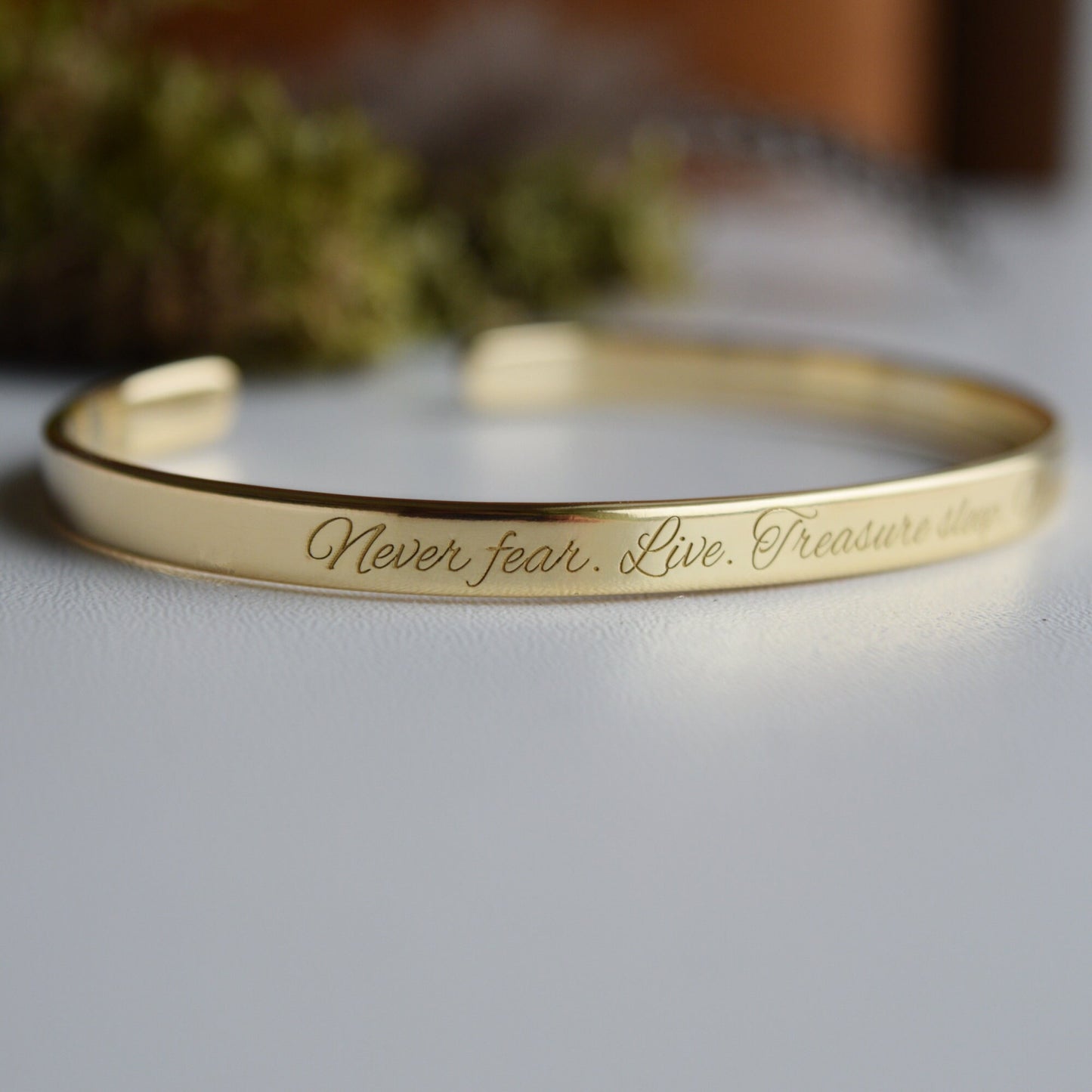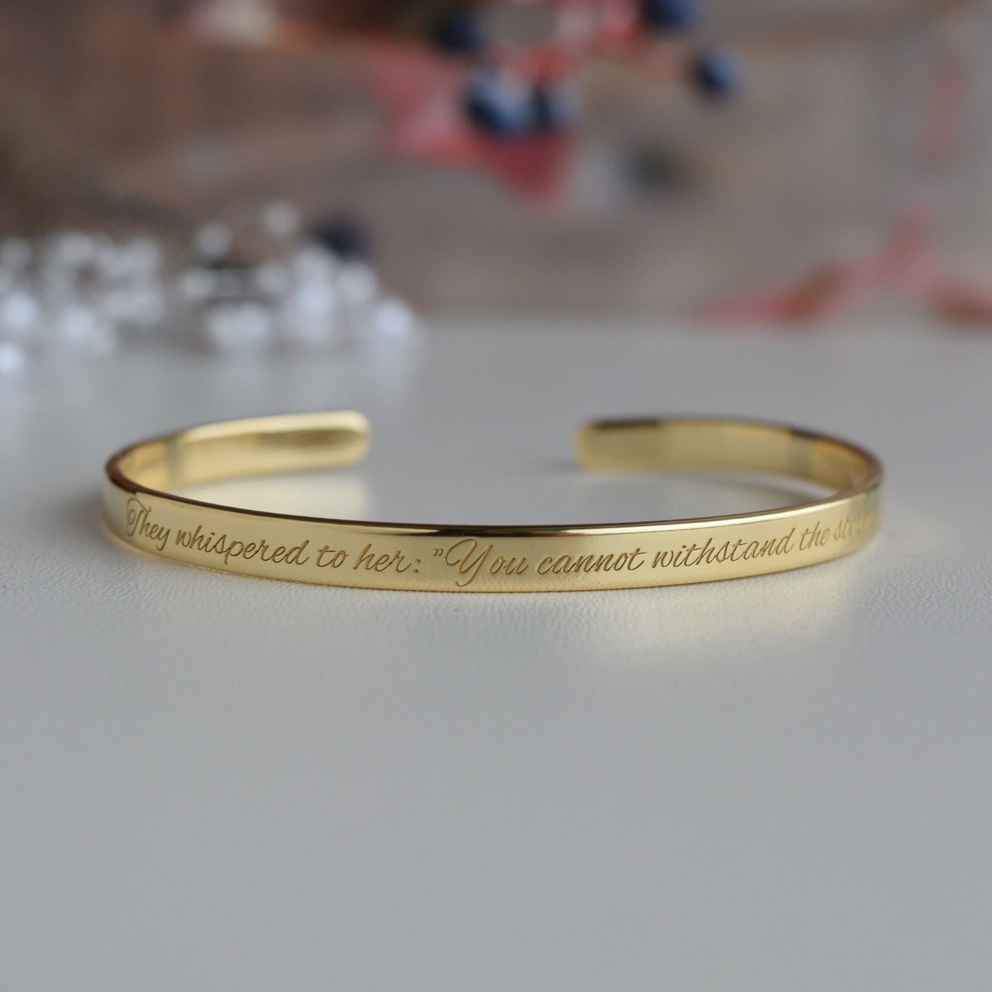 This or any other brave Quote can be engraved on our beautiful gold plated bracelet. It will remind you every day that you have the strength and power to overcome the challenge.