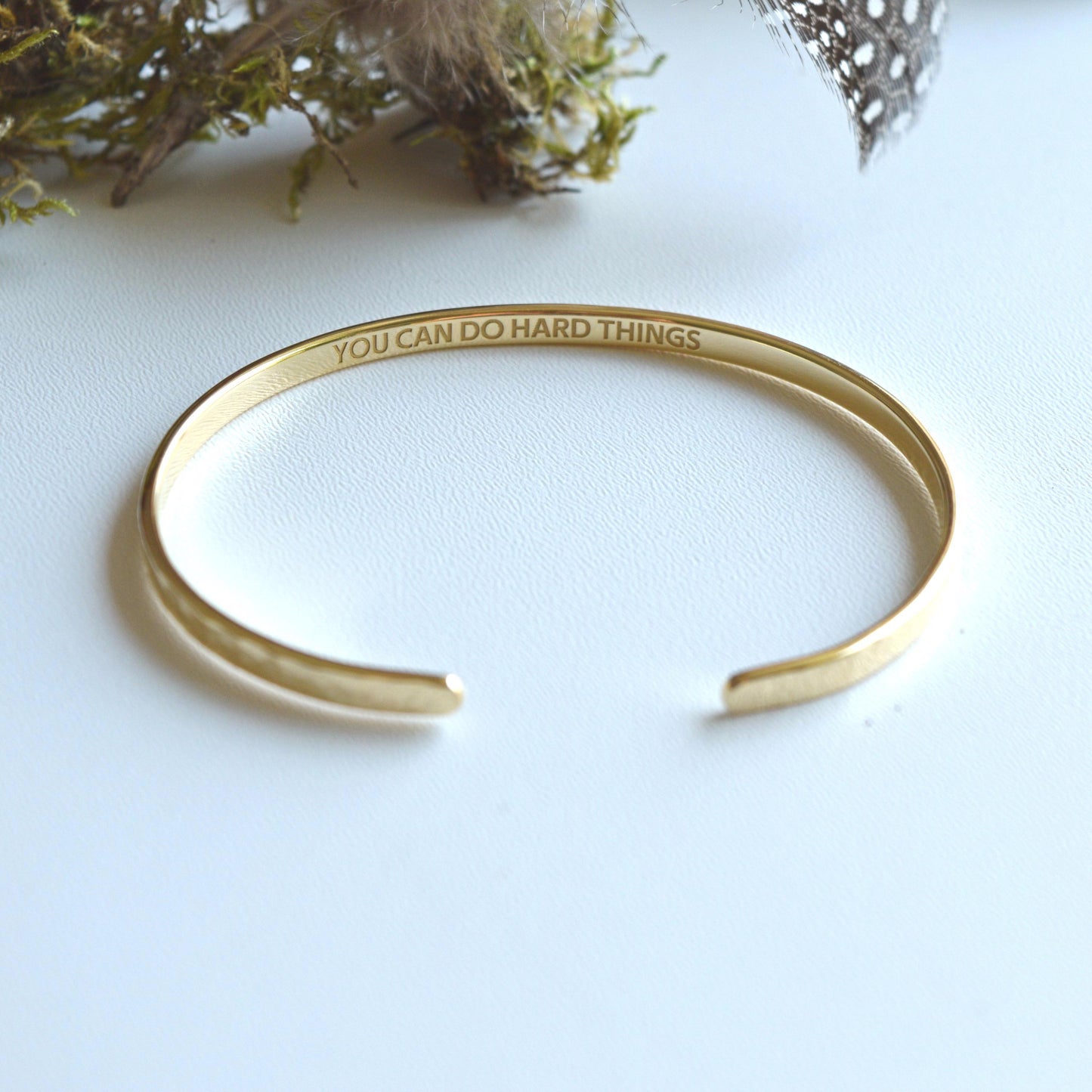 This elegant gold plated bracelet will be one of your favourites. And the personalized secret message inside or outside the bracelet will set your heart fluttering. The bracelet can also be a unforgettable gift that will last a lifetime or more. The bracelet is popular for wedding parties, but we also carry personalized bracelets like medical ID bracelets, pet loss bracelets, catholic bracelets, motivational bracelets.