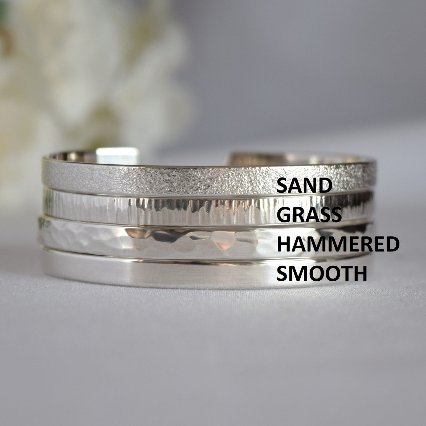 Women's standard size measures 6.3 inches long and fits most teen and adult wrist sizes. It can also be adjusted slightly. This is the length of the metal, not including the opening between the ends. If you would like other size please convo me the wrist circumference