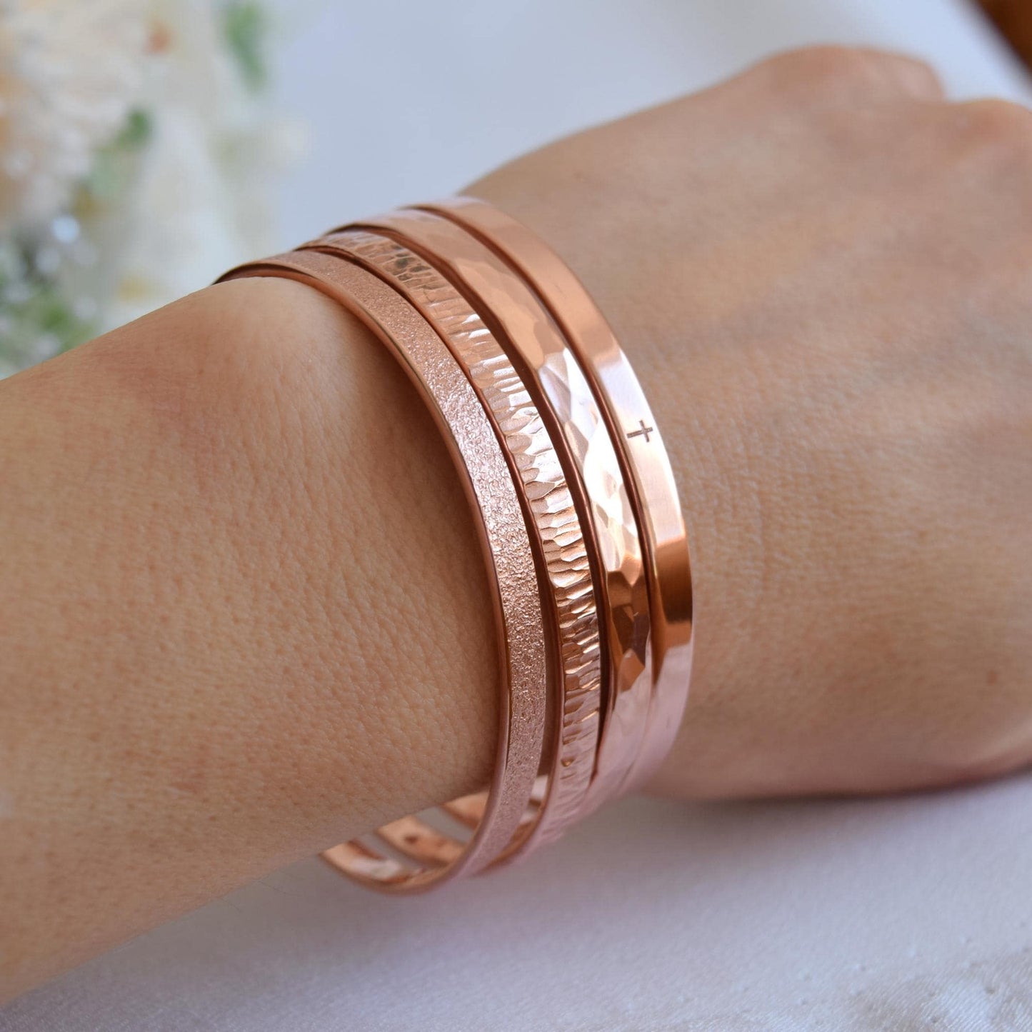 This beautiful copper bracelet is engraved with the statement "I am enough". You can add any symbol or text to this engraving (outside or inside). This bracelet will show your personal acceptance and will be a great daily powerful reminder.