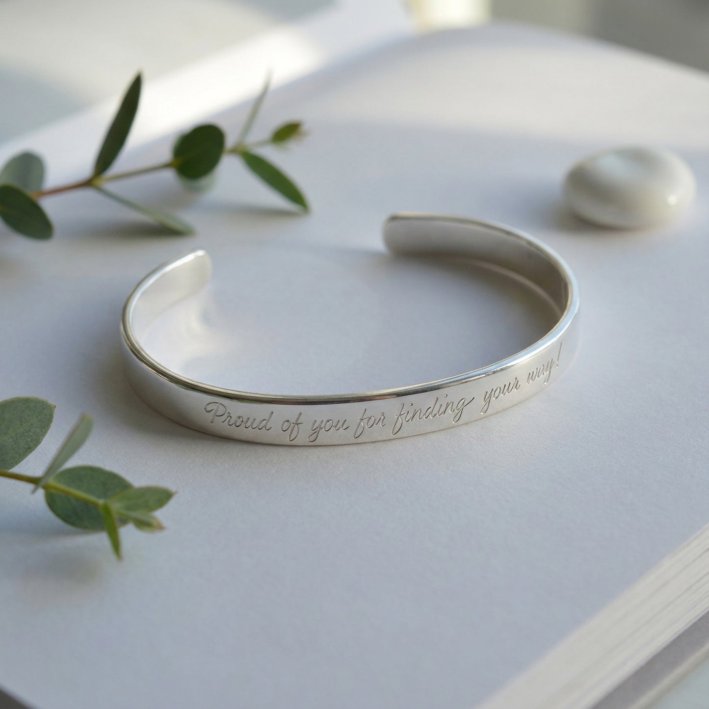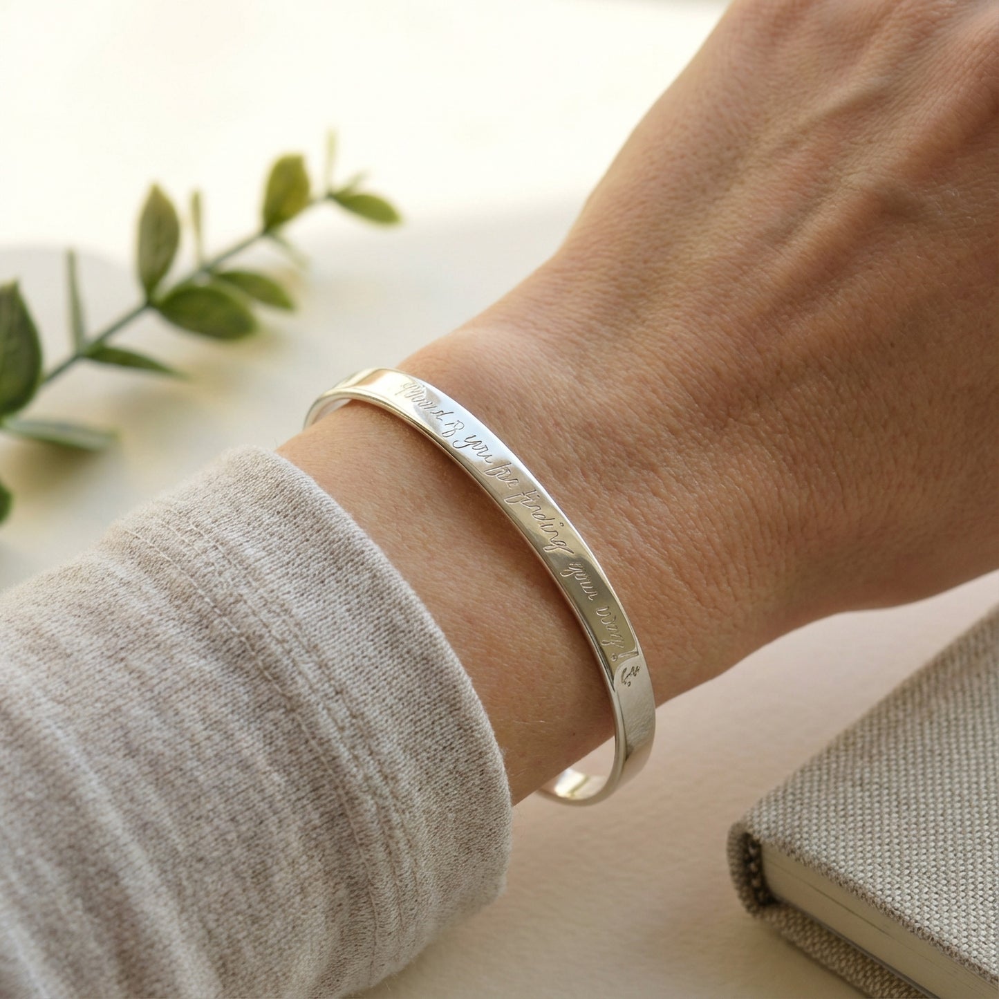 Engraved Sterling Silver Bangle Bracelet, Graduation Gift, 1/4 wide