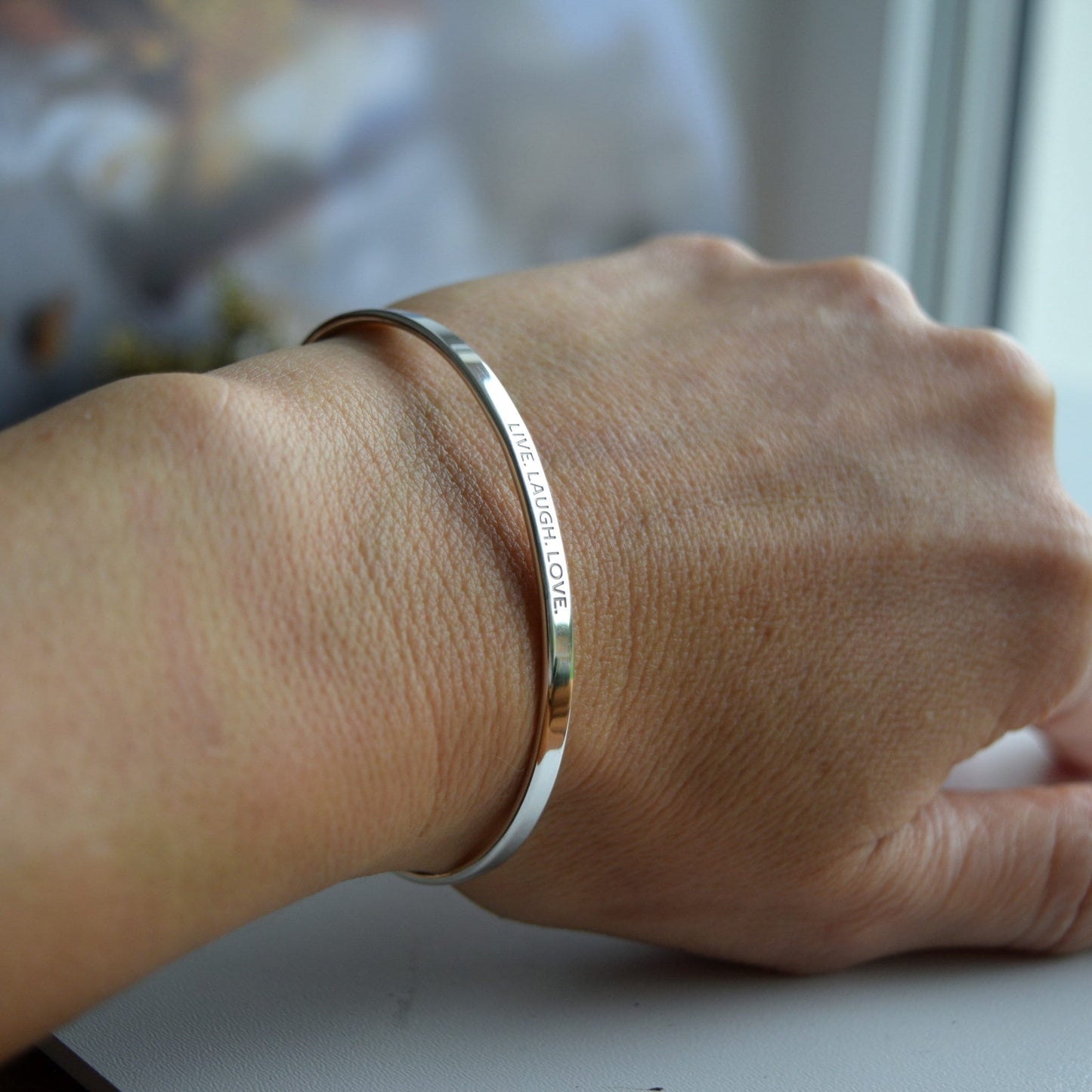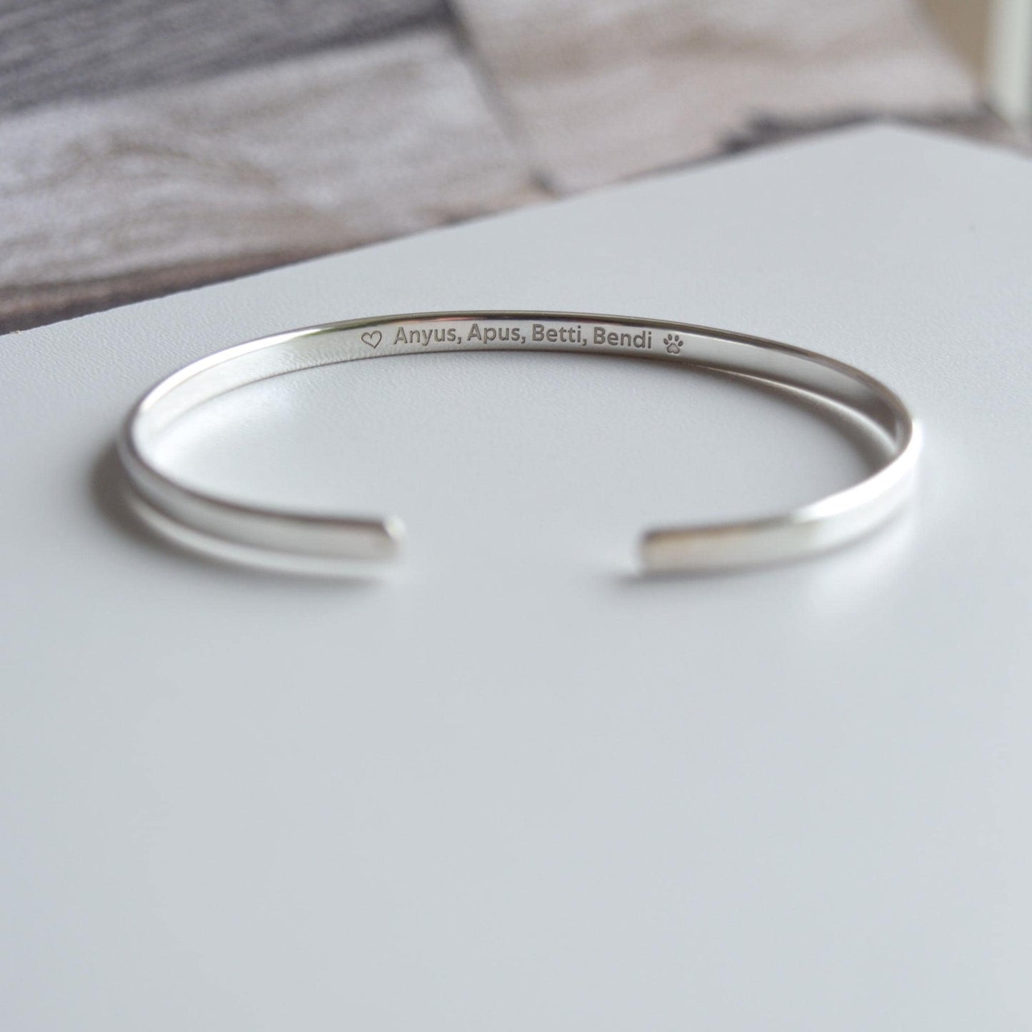 Engraved Sterling Silver Cuff Bracelet: Personalized Message, Keepsake Gift, 3mm Wide