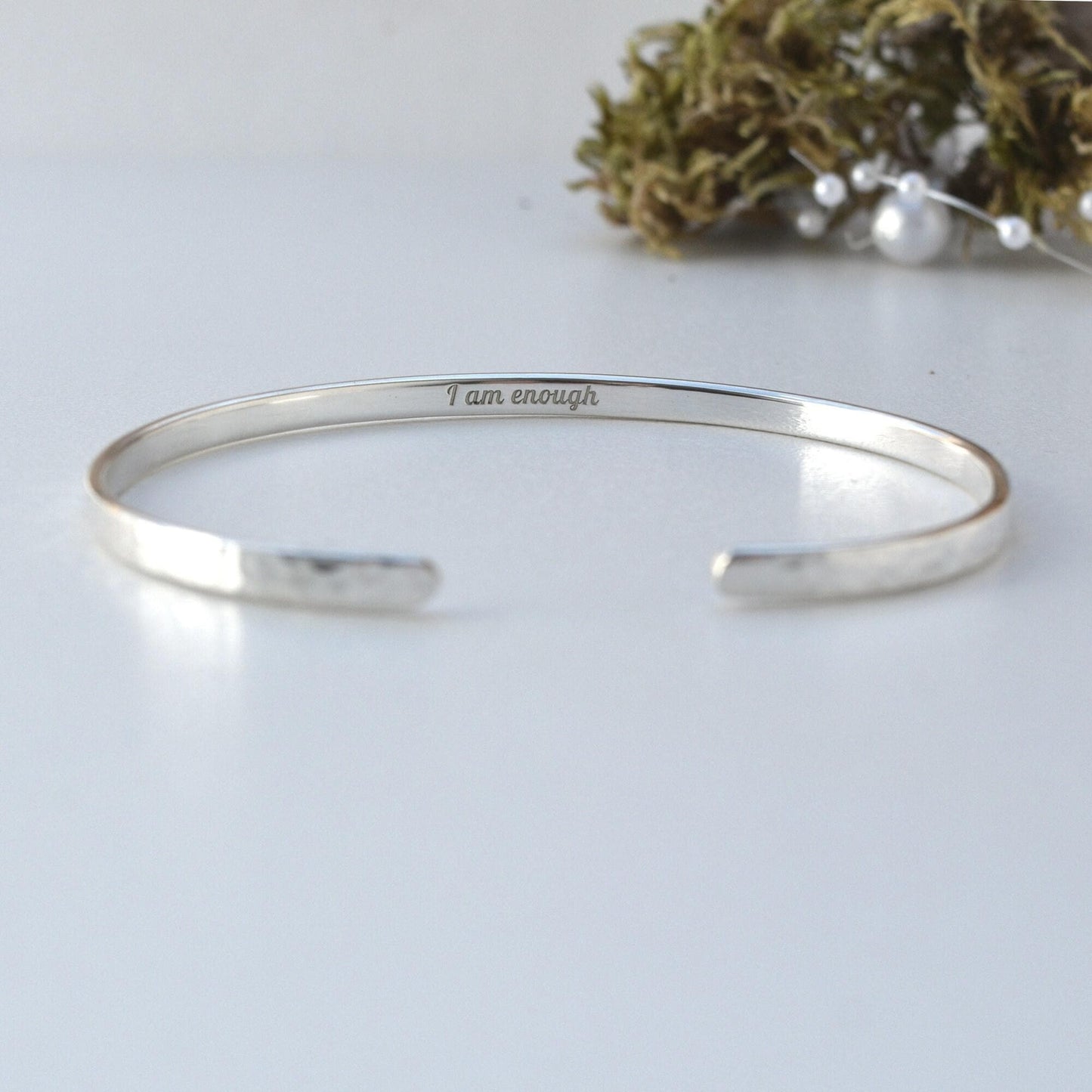 Personalized Sterling Silver Cuff Bracelet: Engraved Message, Mantra, Dainty 3mm