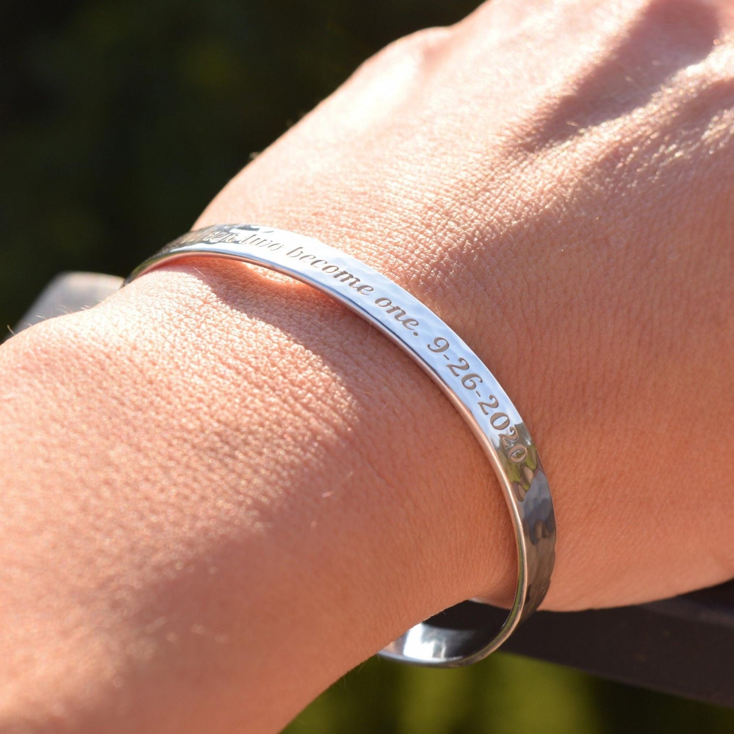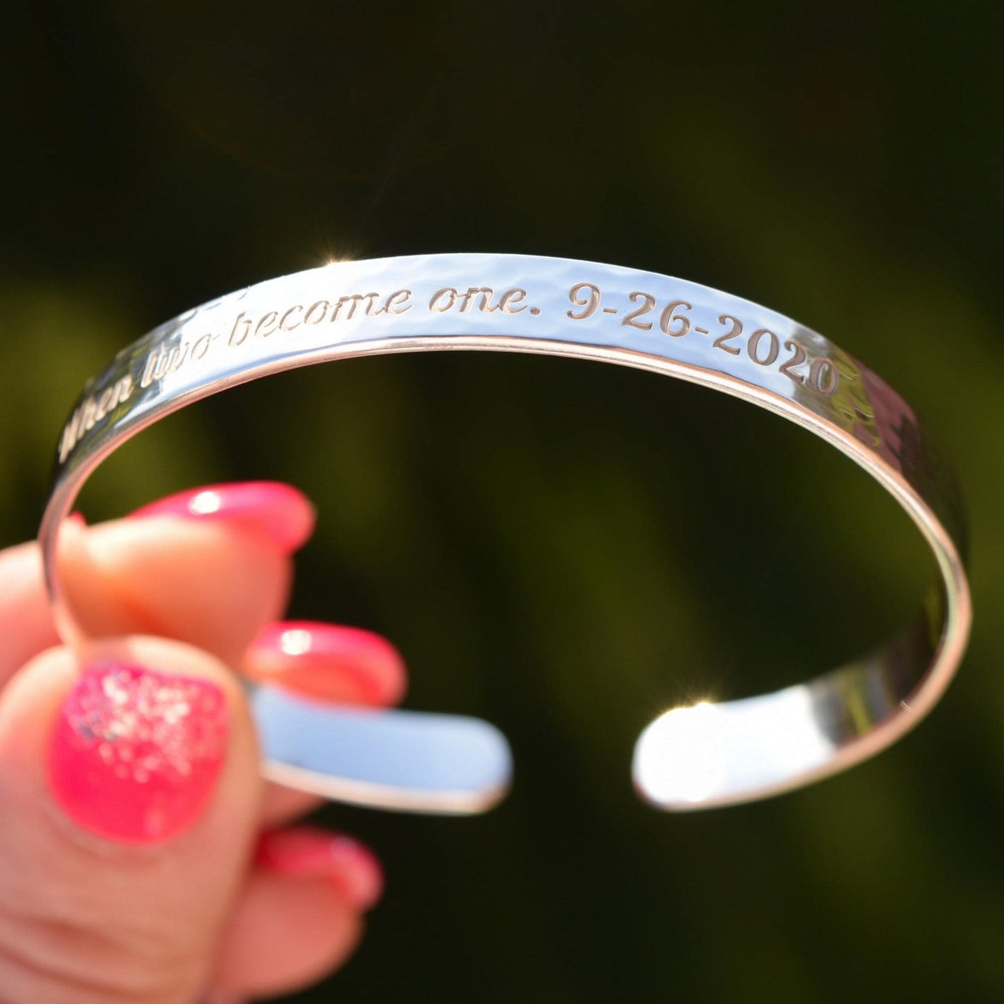 - The bracelet can be engraved with any text, up to 90 characters on each side.
